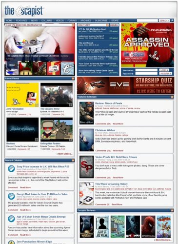 The Escapist covers digital entertainment culture with a progressive editorial style for a mature audience of entertainment enthusiasts, industry insiders and other readers. Weekly magazine-style updates offer several perspectives on a single editorial focus, while daily features and staff editorials provide a look at a broader variety of topics.