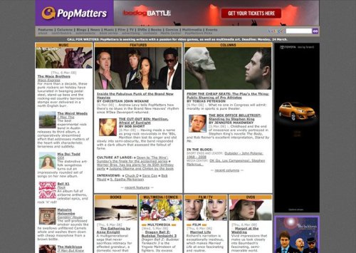 PopMatters.com is the leading independent arts and culture magazine on the Web. The Kindle edition provides select content from all areas of the site Monday through Friday. In our daily publication of features, columns, reviews, interviews, and blogs, we cover all things pop culture, present and past: music and its makers, film and its creators, books and their authors, video games, comics, and more. Our content ranges from engaging reviews to in-depth think pieces. Providing smart readers with sharp, entertaining writing on a wide range of topics, PopMatters is a refuge from the usual hype and gossip. Sun-Times music critic Jim DeRogatis has said that "writing as thought-provoking, engaging, insightful, witty, and just plain ol' fun as much of the fare on PopMatters is a rare and wonderful thing, and it should be treasured." The PopMatters Kindle edition is published in association with Tribune Media Services.